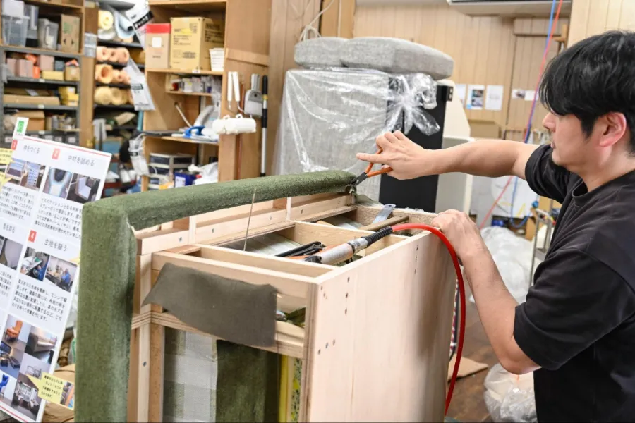 「我々は家具の布の張替えを中心に携わっていますが、ただ張り替えるといっても、美しい家具の姿を生み出すには、数ミリ単位の調整が必要なんです。“神は細部に宿る”という言葉の通り、見えない部分にこそ、私たちの誇りがあるんですよ」
