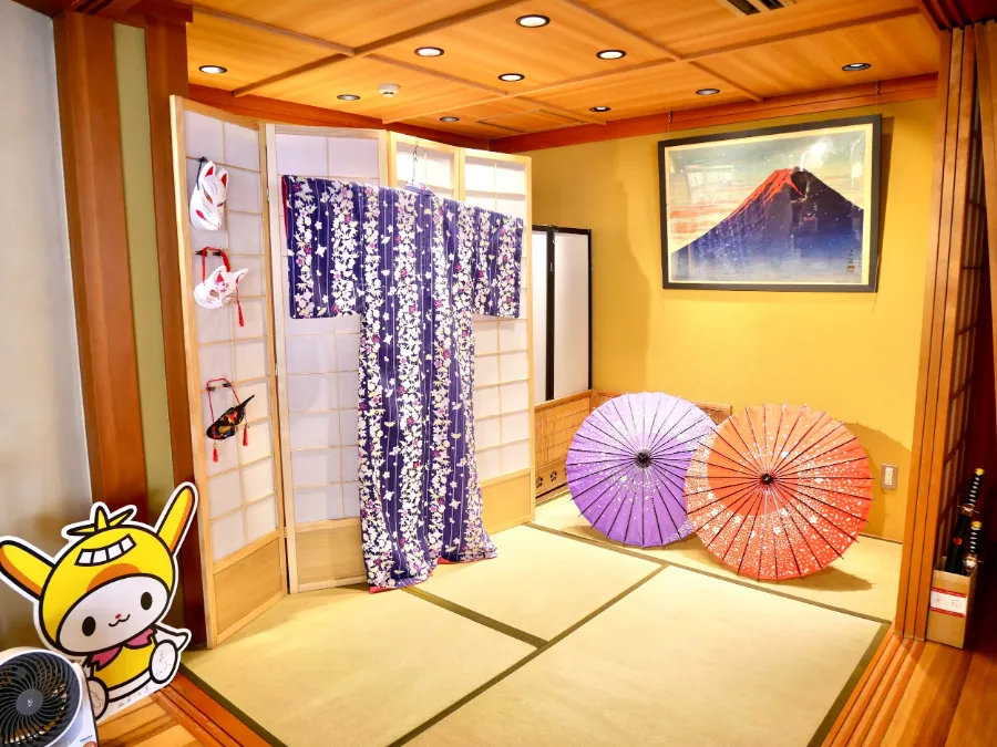 施設に入ってまず目に飛び込んできたのは、畳と着物! 「JAPAN」を感じますね。