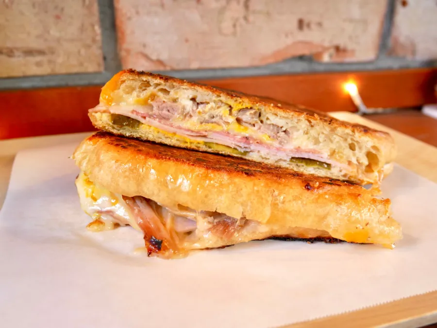 まずは、「トラディショナルキューバサンド(1,400円)」から。ロースハム、ピクルス、アメリカンポークなどを挟んだパンをプレスして焼き上げた一品です。