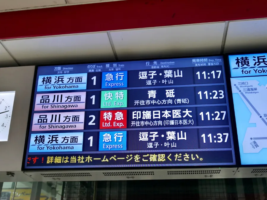 でも大丈夫。蒲田は「横浜方面と品川方面、どっちに乗ってもOK」なんです! 空港方面からの京急線は「京急蒲田」駅の先で品川方面・横浜方面に分岐します。早く来たほうに乗りましょう。列車種別もたくさんあって迷いそうですが、「普通」「急行」「特急」「快特」が「京急蒲田」駅に停車します。ほとんどが停車するものの、「エアポート快特」のみ「京急蒲田」駅には停車しないので注意しましょう。なお、電光表示では「エアポート」の文字がありません。「飛行機マーク+快特」となっていますので、見間違えてしまわないように気をつけてください!