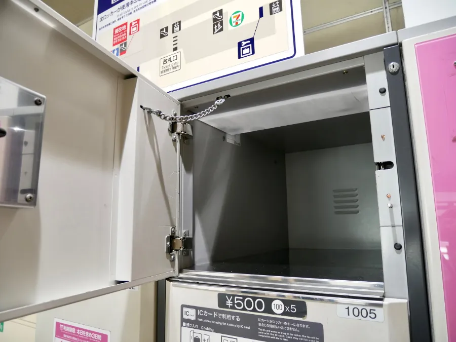 ポイント:改札内のトイレの横、分かりやすい位置にあるロッカー。