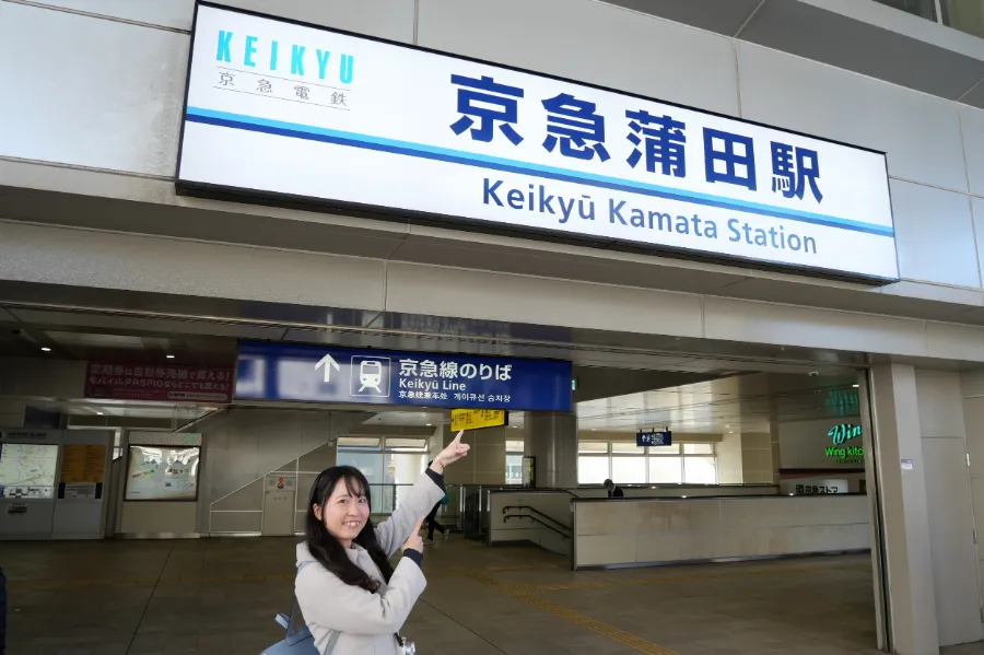 羽田空港から京急線に乗って、「京急蒲田」駅に到着!