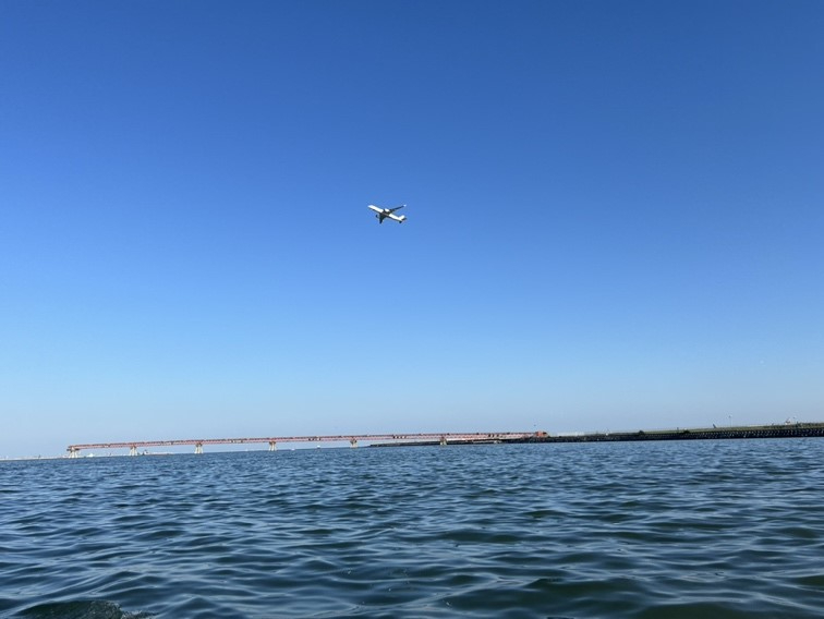 クルーズの折り返し地点で見えてくるのが羽田空港。ここから多くの飛行機が大空へ飛び立っていきます。