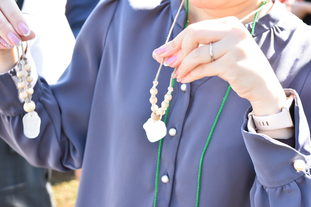 もともとは海のゴミであるシーグラスで作成されたペンダントは、「売り物ですか?」と言いたくなるほどのクオリティでびっくり。