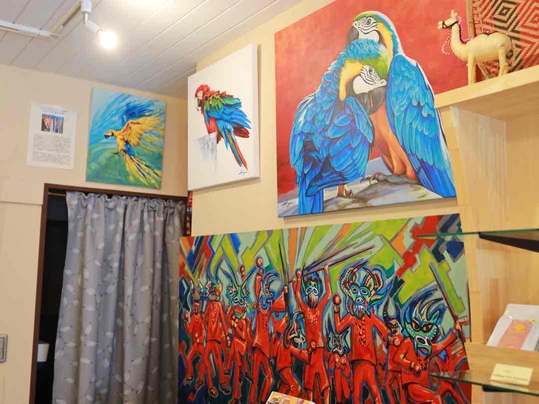 店内には、ベネズエラのアーティストが描いたという絵画が飾ってありました。エネルギッシュな作品と店内に漂うチョコレートの香り、ホルヘさんの楽しいお話に気持ちが引き込まれます!