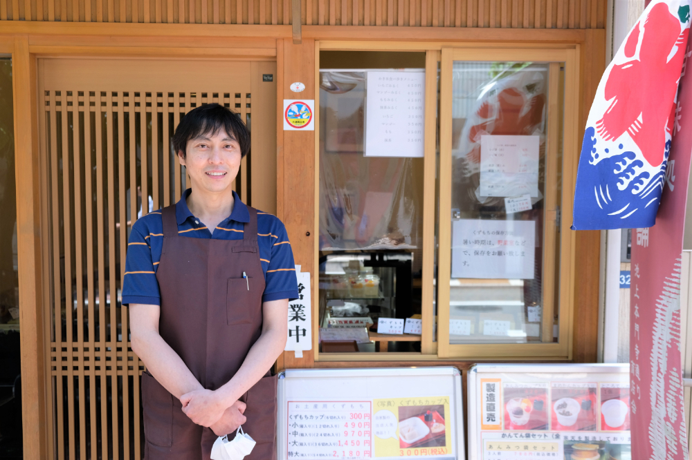 「池田屋」は、店主さんの気さくな人柄も素敵。このお店が愛されているのは、久寿餅の美味しさはもちろん、店主さんの温かさによるところも大きいのかもしれません。