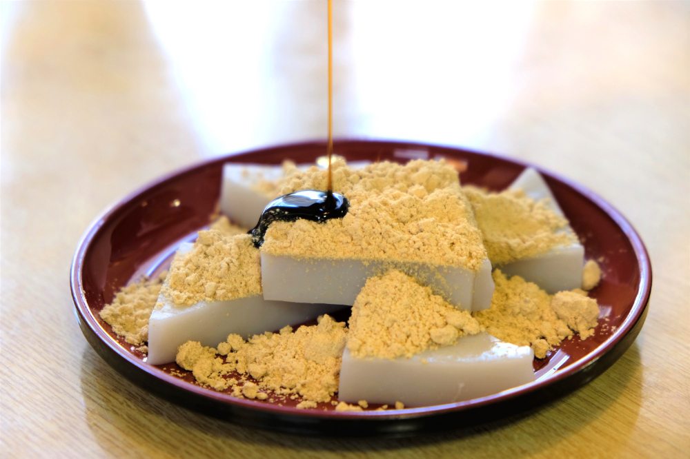 とろりと黒蜜をかけて食べたその味は、めっちゃ幸せ……と思わずつぶやきたくなるような美味しさ。彼女と一緒だったら、本当にお互いにつぶやいてしまうかもしれません。ぷるんぷるんの食感の久寿餅が絶妙で、程よい弾力がありながら、つるっと喉ごしが気持ち良いのです。きなこの香ばしさ、黒蜜の濃厚な甘さも、久寿餅の味わいをさらに引き立ててくれます。