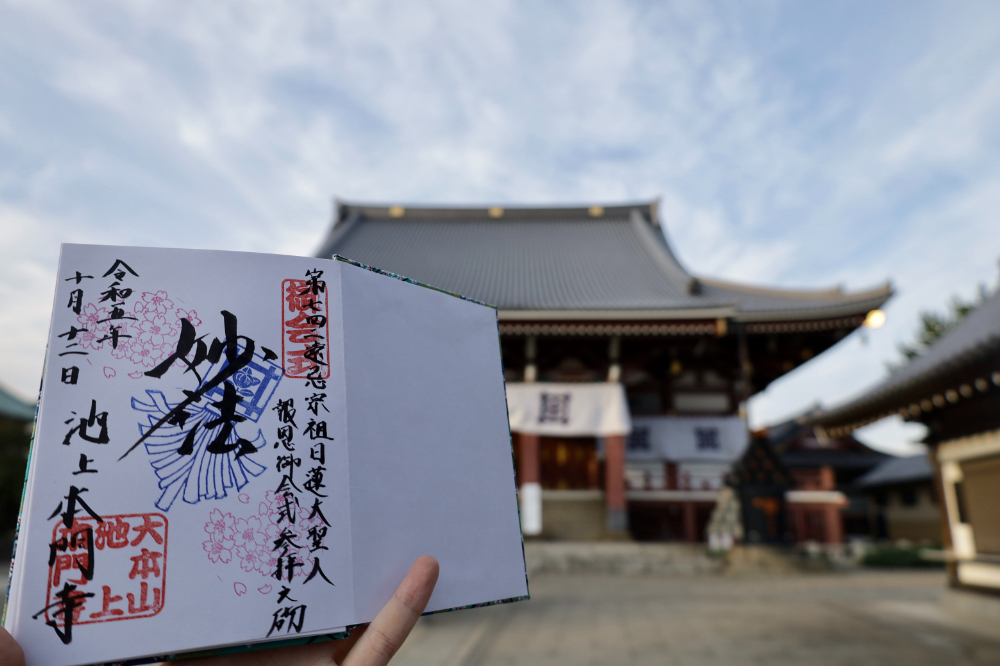 参拝した証として授与していただける御朱印も、お会式の期間は普段とは異なる特別バージョンです!お会式桜と纏があしらわれていて、とても素敵なデザインです。念のため、と御朱印帳を持っていって良かったです。限定バージョンの特別感にありがたさも倍増です。