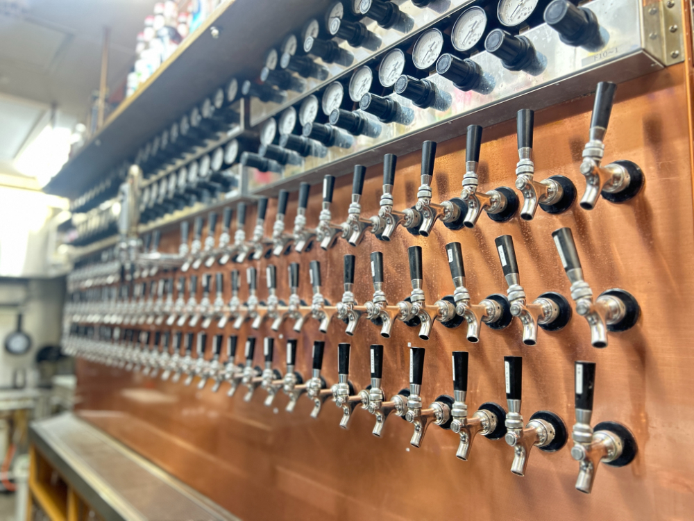 店に入って目線を右に移すと、圧巻のビールサーバー! 数えきれないほどのタップがあります。こんな量のタップ、日本ではなかなかお目にかかれません。