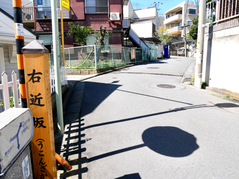 臼田坂の由来に興奮していたら、さらに興味深い「人の名前由来」の坂に出くわしました。右近坂です。
