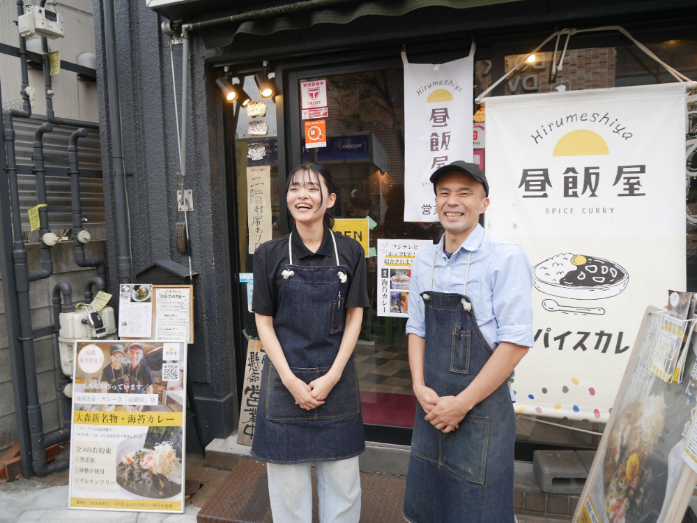 朗らかな笑顔の似合うご夫婦が切り盛りするのは、京急本線「大森町」駅の目の前にある無添加カレー店、「昼飯屋(ひるめしや)」。メディアでもよく取り上げられる人気店なので、聞いたことがあるという人もいるかもしれません。