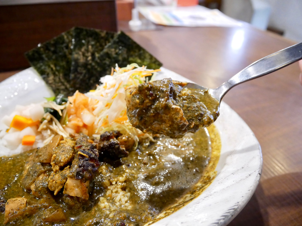 トッピングの焼き海苔でルーとライスを巻いて食べたり、自家製のスパイスビネガーをちょい足ししたりと、いろんな食べ方を楽しめるので、何度も通って食べてみるのがおすすめです。