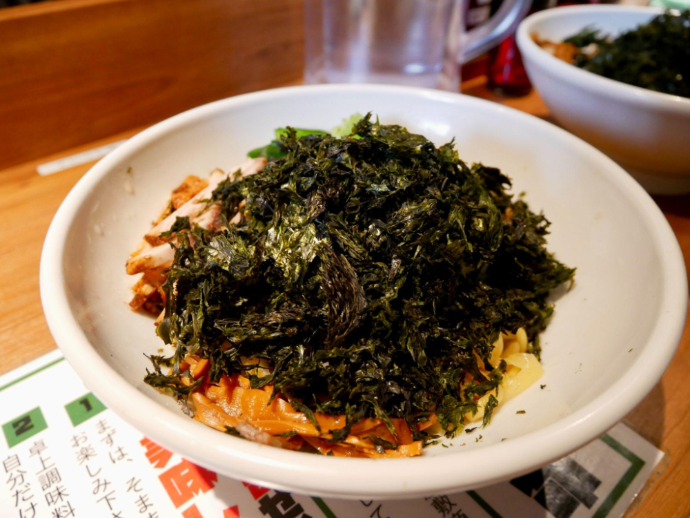 すごい……! こんなラーメンやまぜそば、見たことがありません。どちらも海苔が丼を覆いつくす勢いで、完全に主役です。