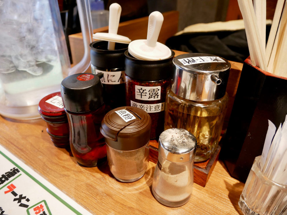 「ŌNORI」は味変できる調味料も多彩。「まぜそばにかけるのかな?」と思い店長の町田 勇司さんに聞くと、「どちらにかけてもOK」とのこと。