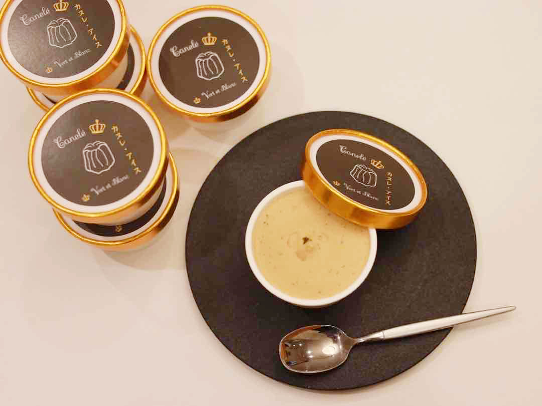 ここで言うカヌレ感とは、カヌレ特有のシロップの香りやムニムニとした食感のこと。一般的にイメージされるカヌレの形こそないものの、カヌレの存在感をアイスクリームの中に感じられる新感覚のスイーツです。