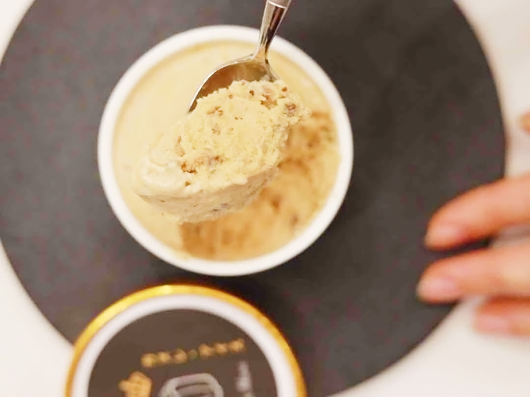 スプーンですくったときの質感や口に入れたときの舌触りはアイスクリームなのに、味はカヌレそのものと言ってもいいほどカヌレ。甘い中にもシロップやこがしキャラメルが香る大人な美味しさで、自宅でのプチ贅沢に適役だと感じました。