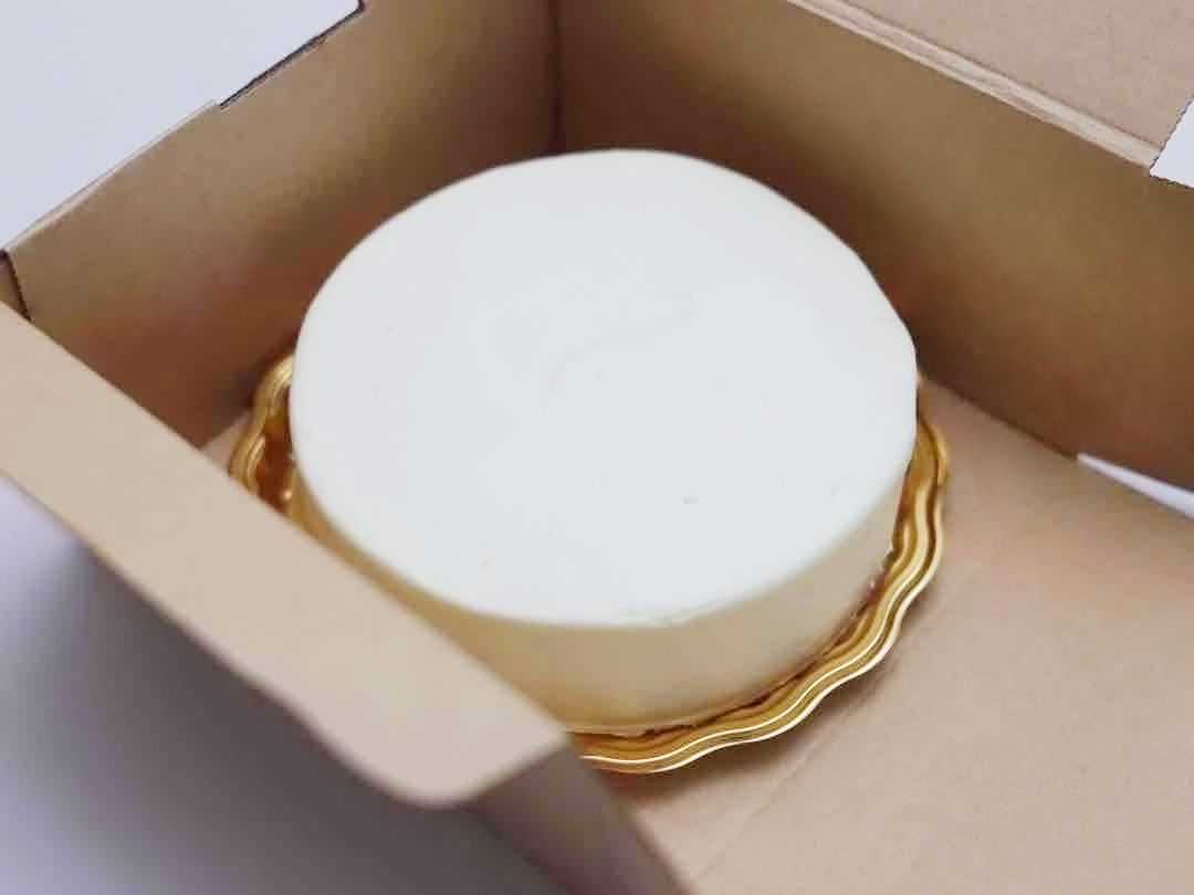箱を開けてみると、写真通り真っ白で、表面の仕上がりは想像以上にきれいなケーキが入っていました…! なんとも愛おしいです!