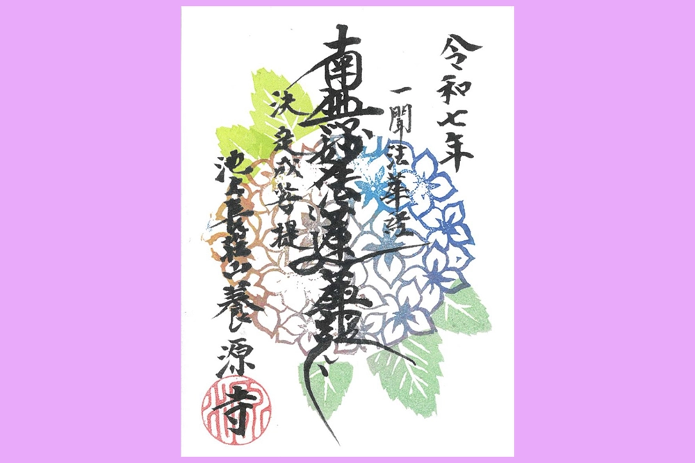 期間限定の紫陽花の御朱印。直書きは僧侶の方が在寺時のみです(写真提供=養源寺)