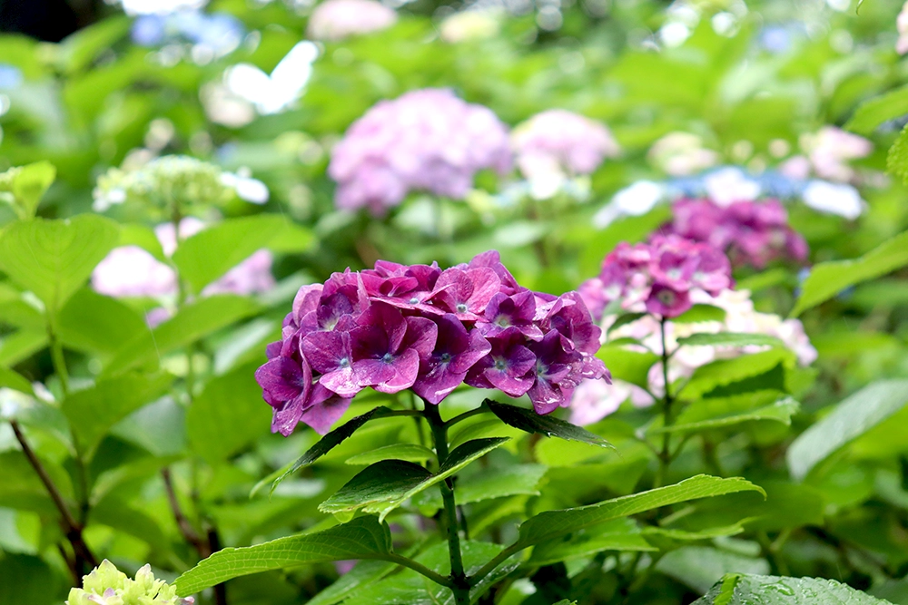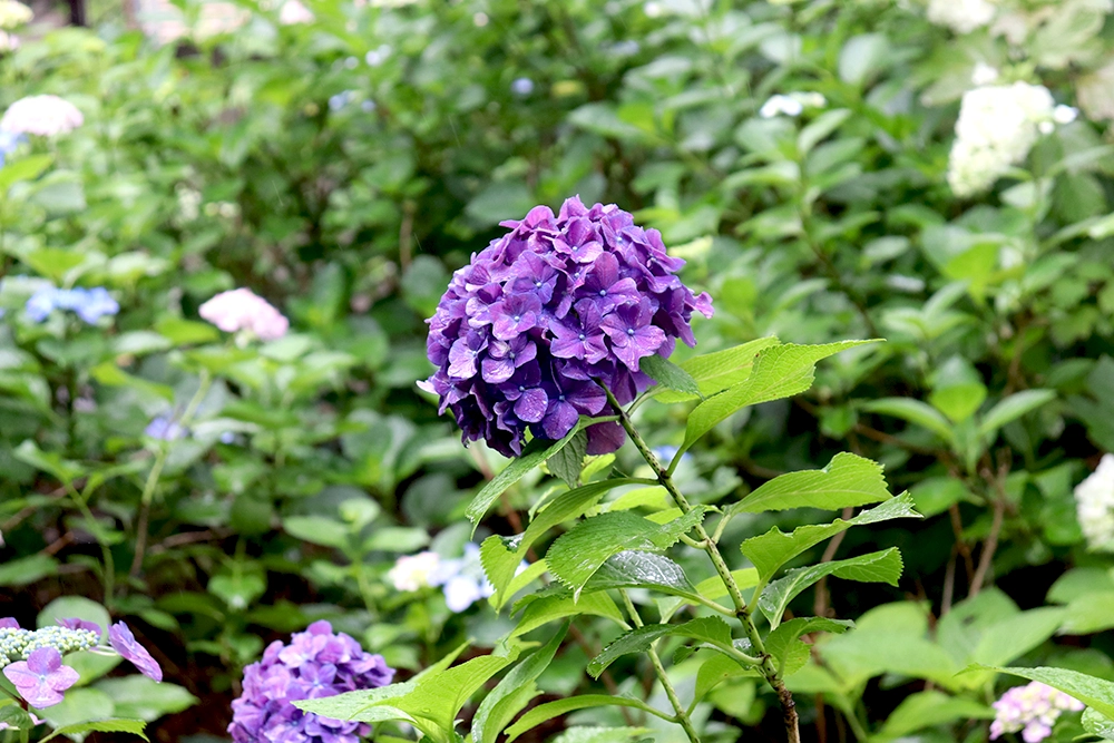 晴れて空が澄んだ日の紫陽花、雨でしっとりと艶やかな紫陽花、夕暮れ時の儚げな紫陽花、と天気や時間帯によってさまざまな顔が味わえるのも紫陽花鑑賞の醍醐味でしょう。