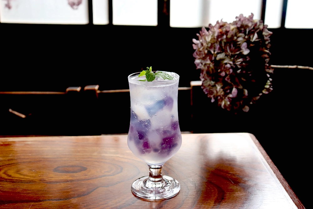 「古民家カフェ蓮月」の期間限定の紫陽花ソーダ