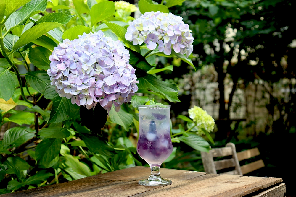 店主の輪島さんによると、「古民家カフェ 蓮月」の紫陽花は少し遅めに咲くそうで、養源寺や妙見堂の紫陽花が終わった時期でも楽しめる可能性があるとのこと。「紫陽花ドリンク」の販売期間は紫陽花が枯れる頃までなので、お店のSNSを確認してぜひ訪れてみてください。例年、5月頃から7月くらいまで販売しているそうです。(2025年は7月12日で紫陽花ソーダは終売)