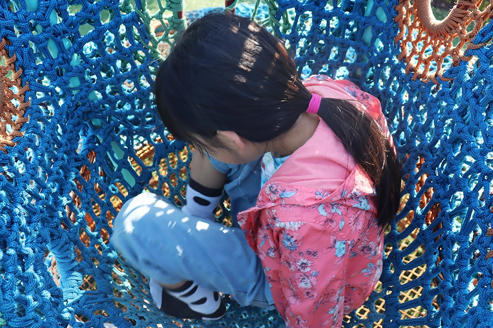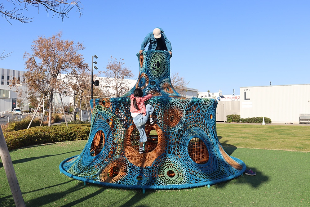 見た目からワクワクする初めて目にする遊具に、子どもたちは嬉しそうに遊具に駆け寄って遊び始めました。