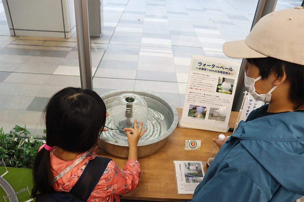 娘が興味を持ったのは、水膜厚1mmの高精度噴水「ウォーターベール」。