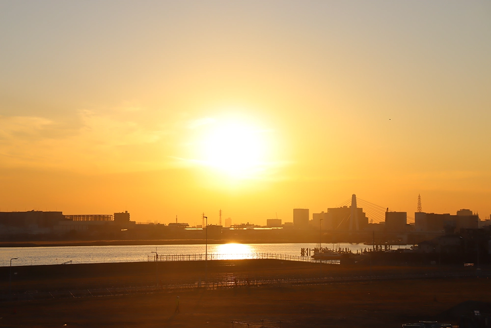 羽田イノベーションシティから見える日の出や朝焼けがとっても美しい