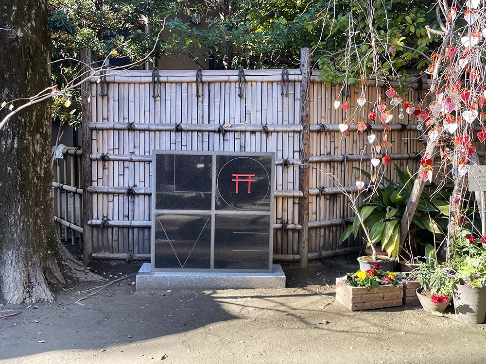 グラフィックデザイナー・ 浅葉克己氏による石の彫刻LOVE神社が奉納され、