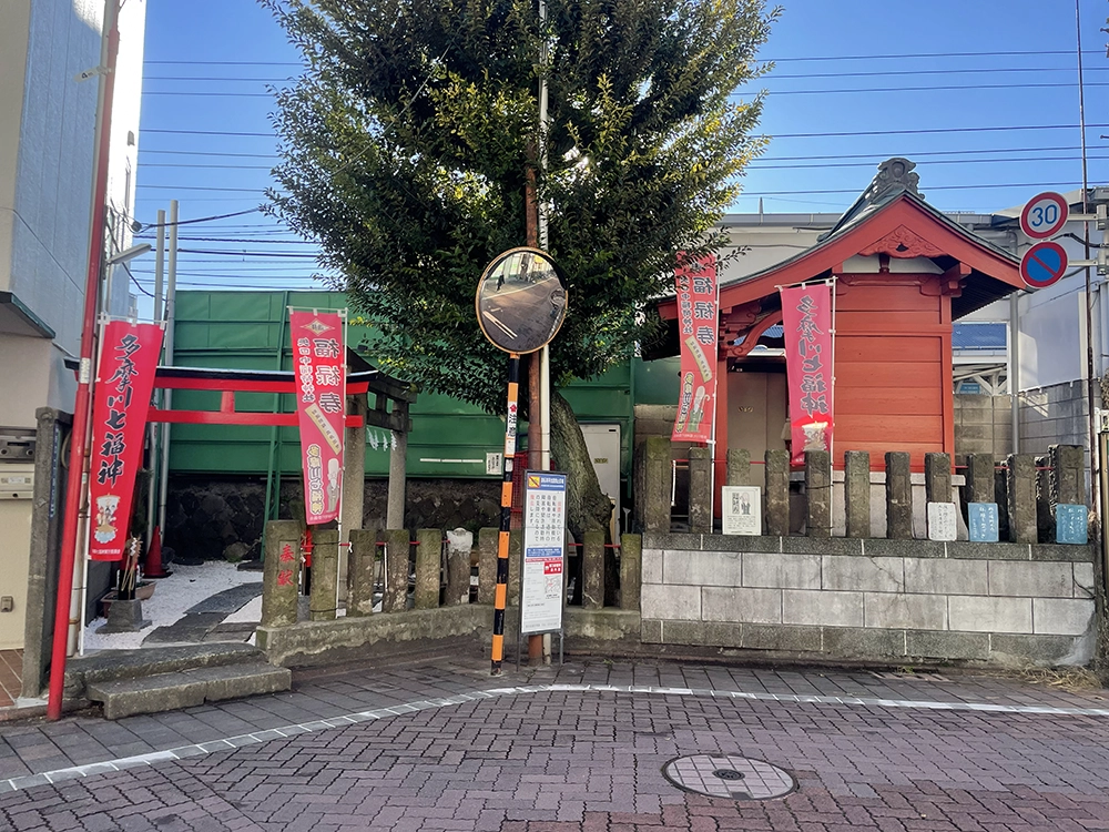 武蔵新田商店会の未来門のゲートをくぐって商店街を3分ほど進むと、右手に見えてくるのが新田神社(大田区矢口1-21-23)。