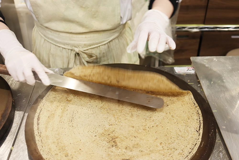 パリッとした焼きあがりのクレープの皮は、ここでしか食べられない唯一無二の味。