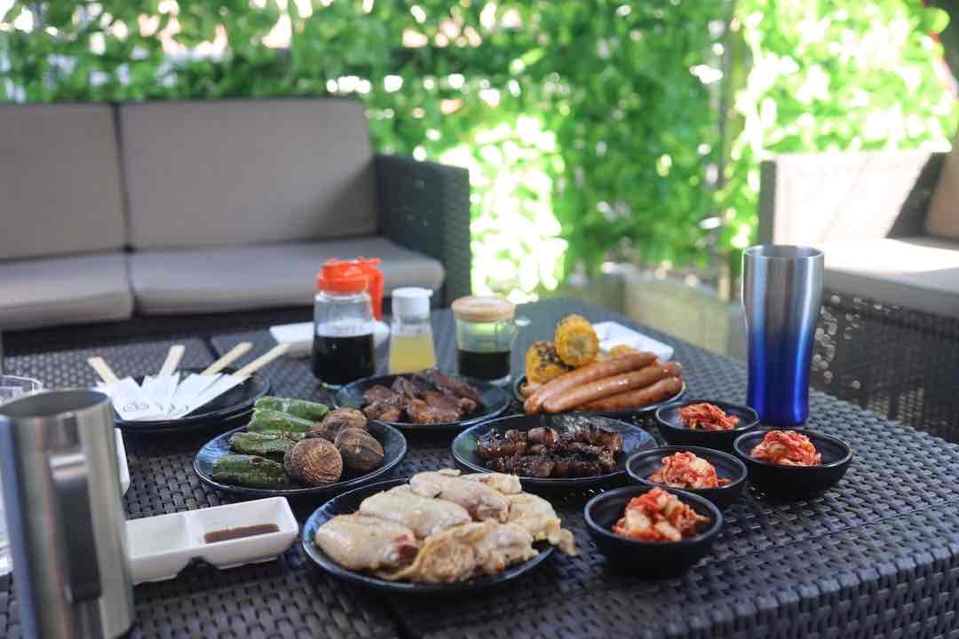 本格的なバーベキューの設備を前に、まだ食事が提供されていないにも関わらず、写真撮影大会がスタート。「ちょっと飛ばし過ぎでは? こんなペースでシャッターを切っていたら何枚写真を撮ることになるのだろう」と思いつつ、あまりのオシャレさに私もすっかりリゾート気分になって、映える角度を探して気づけば撮影大会に参加していました。