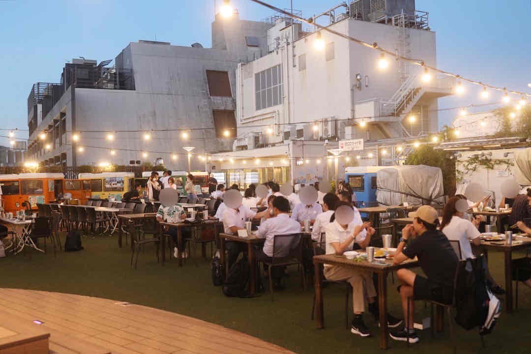屋外飲みの魅力にすっかりハマった一同は、蒲田でビアガーデンをはしごしてみることにしました。蒲田駅に戻ってきて、東急プラザ蒲田の「屋上かまたえん」で開催されている「ソラキンガーデン」を覗いてみることに。