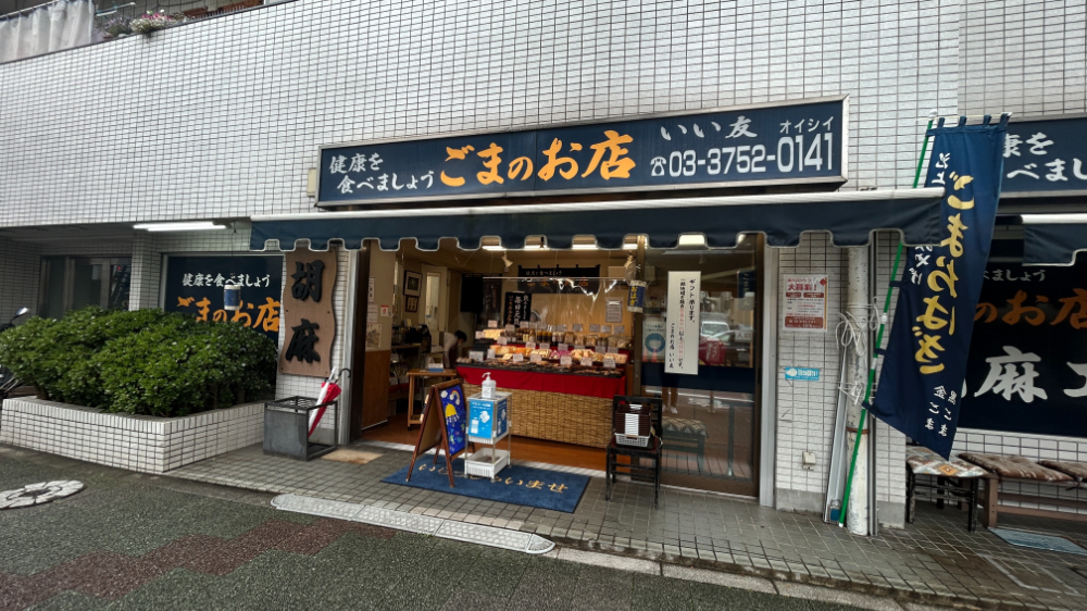 東急池上線池上駅から池上本門寺に向かって歩いていくと、参道沿いに「ごまのお店」と、とても大きく分かりやすい看板のこちらのお店が見えてきました。