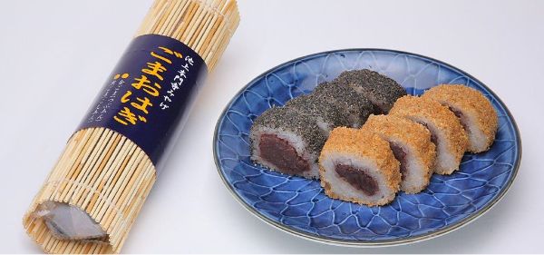 いい友さんの「ごまおはぎ」は、一般的な俵型・・ではなく、なんとのり巻きのような棒型。