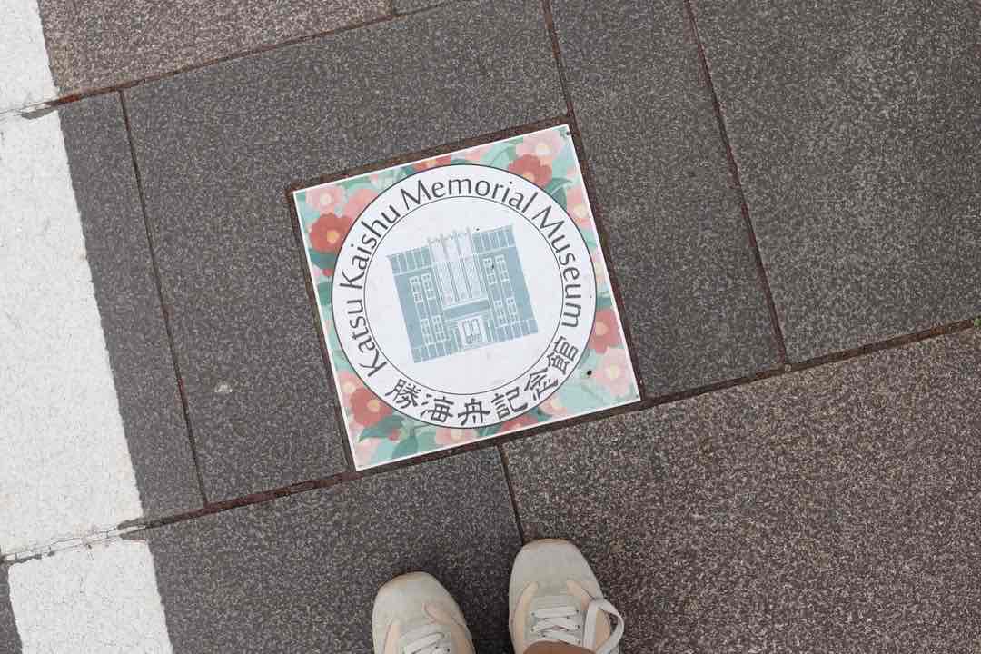 勝海舟記念館から洗足池図書館までの道では、椿や梅など華やかな絵柄があしらわれた勝海舟記念館オリジナルタイルも発見!