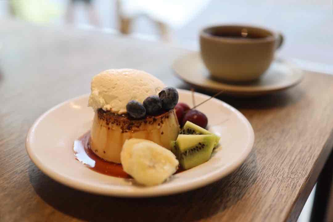 cafe634のメニューは、児玉さんとスタッフとの話し合いと、お客様からのお声を取り込んで決まるそうです。今年の夏、初めて販売をスタートさせたというのが「プリンアラモード」(650円)。
