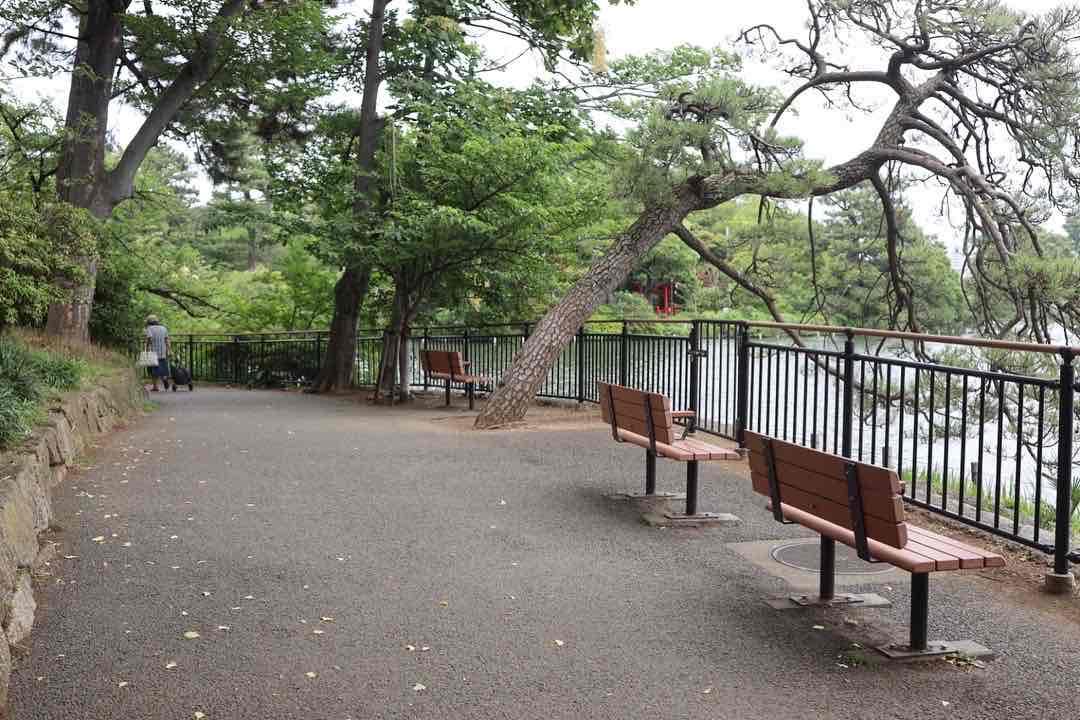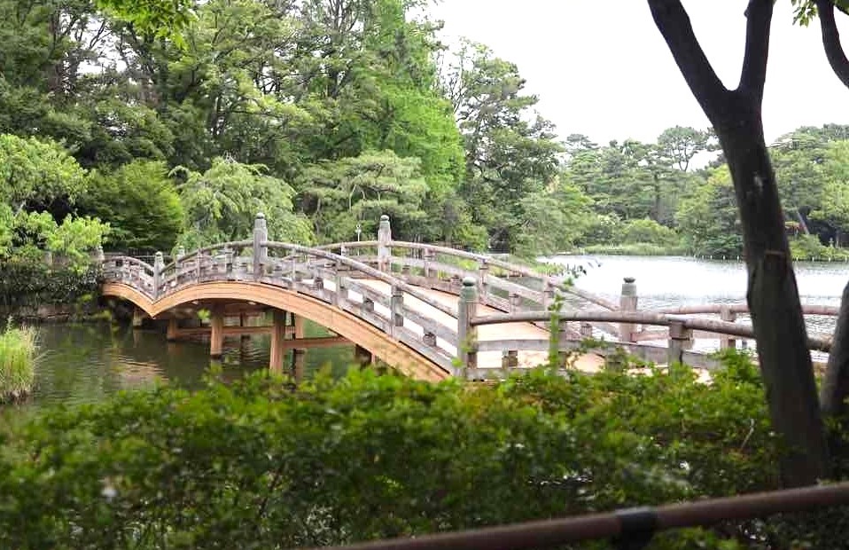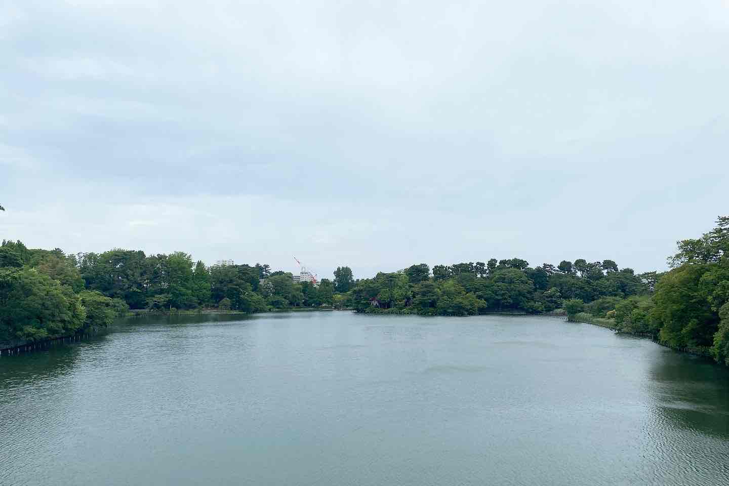 6月下旬の蒸し暑い時期に訪れたこともあり、池月橋と公園のみどりを少し離れたところから見ると、清涼感があって心が癒されました。