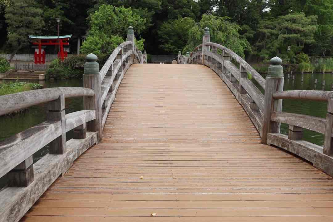 洗足池沿いの遊歩道を時計回りに進んでいくと、橋が見えてきました。池月橋です。