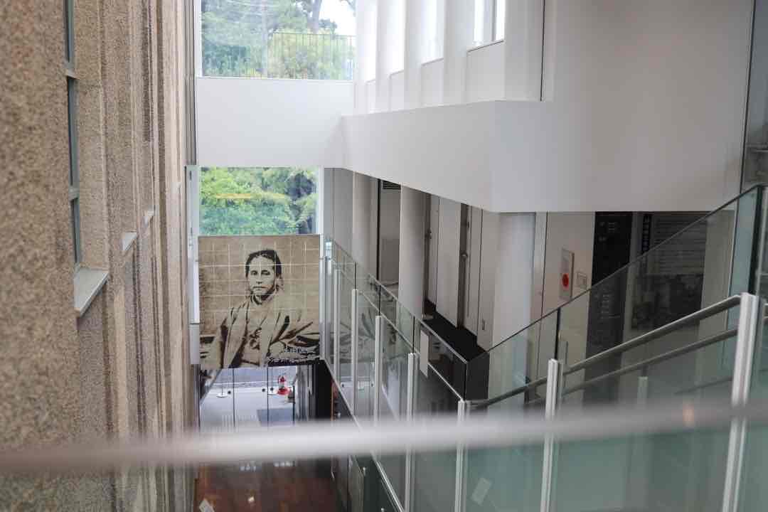 2階に続く階段は、レトロ感たっぷり。階段をゆっくり上ったり、床のタイルをじっくり眺めたりして、ちょっとしたタイムスリップ感を一人で楽しんでみました。