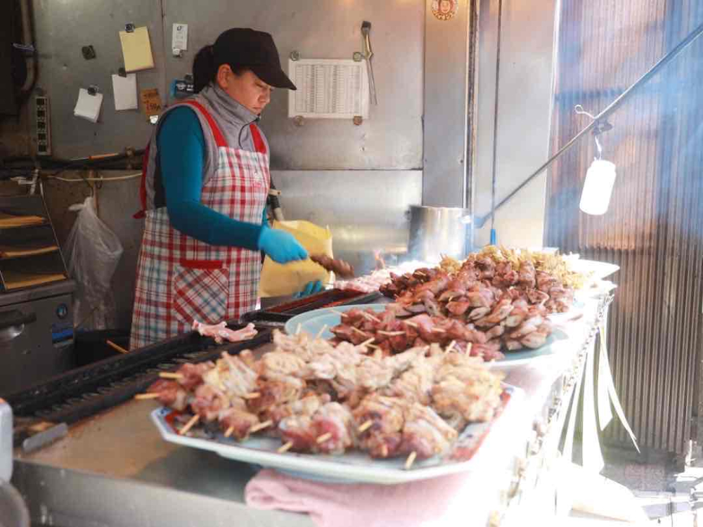 盛り盛りの焼き鳥と煙の香りが人々を惹きつける