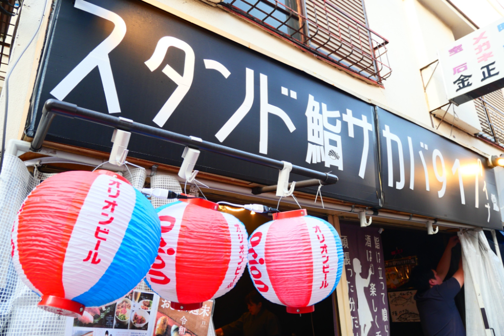 次に立ち寄ったのは、立ち食い寿司のお店「スタンド鮨サカバ917(クイナ)」です。これまで外で食べ歩きを満喫してきましたが、最後は店内で落ち着いていただきます。天候が悪くても立ち食い店であれば商店街の雰囲気を楽しめますね。