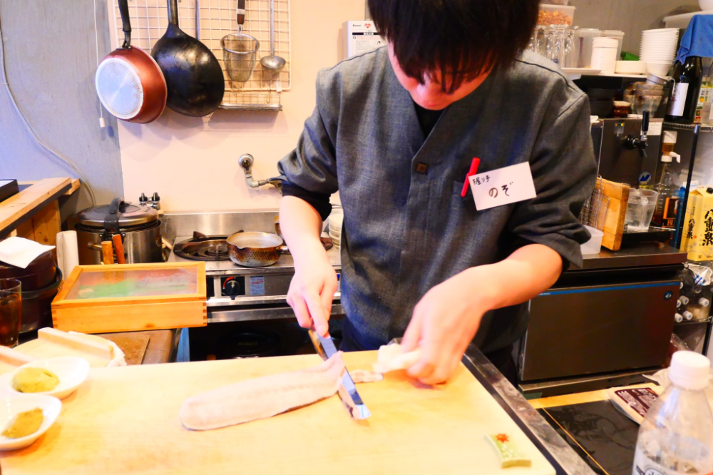 目の前でお魚を捌いてくれたり、燻製した藁焼きのサワラには提供時にお醤油をササッと塗ってくれたりと、ライブ感に大興奮! 作り手の顔が見えること、出来立てを提供していただけることも商店街グルメのよさだと思います。
