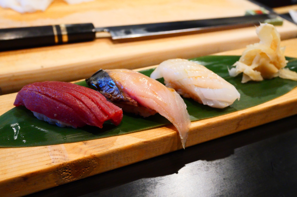 赤酢を使用した江戸前寿司に使われるのは、大将が毎朝市場に出向き仕入れる新鮮なお魚です。シャリはハーフサイズで注文することもでき、商店街での食べ歩きにぴったり。