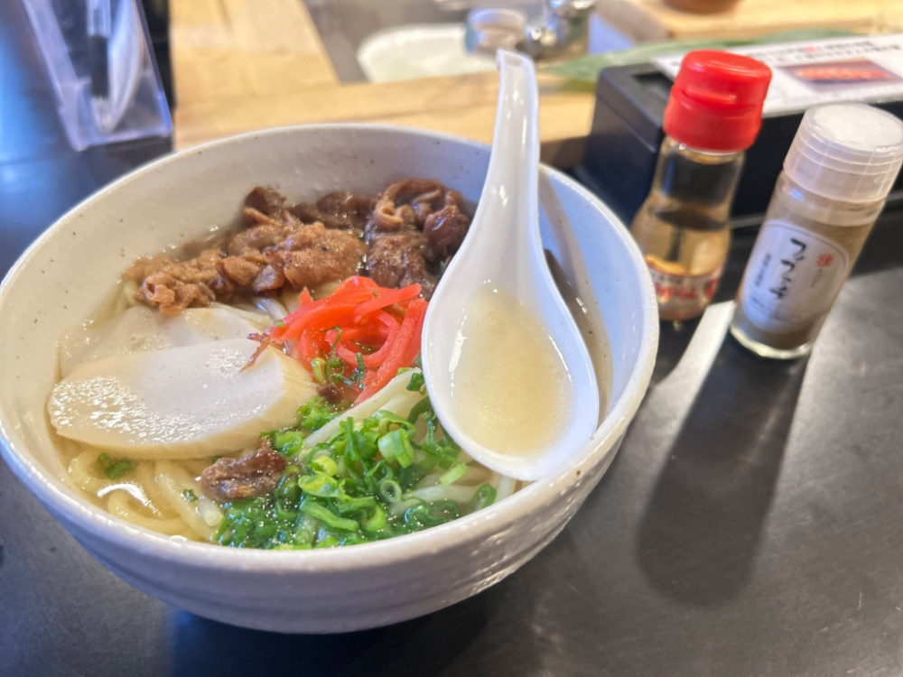 さまざまな出汁の旨味が詰まりつつあっさりしたスープは〆にはもってこいです。沖縄っぽさのある調味料で味変すると、さらに現地の雰囲気を感じられます。