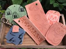 さまざまなデザインのハンコから好みのハンコを選んで廃材にスタンプ。お気に入りのキーホルダーを作りましょう♪