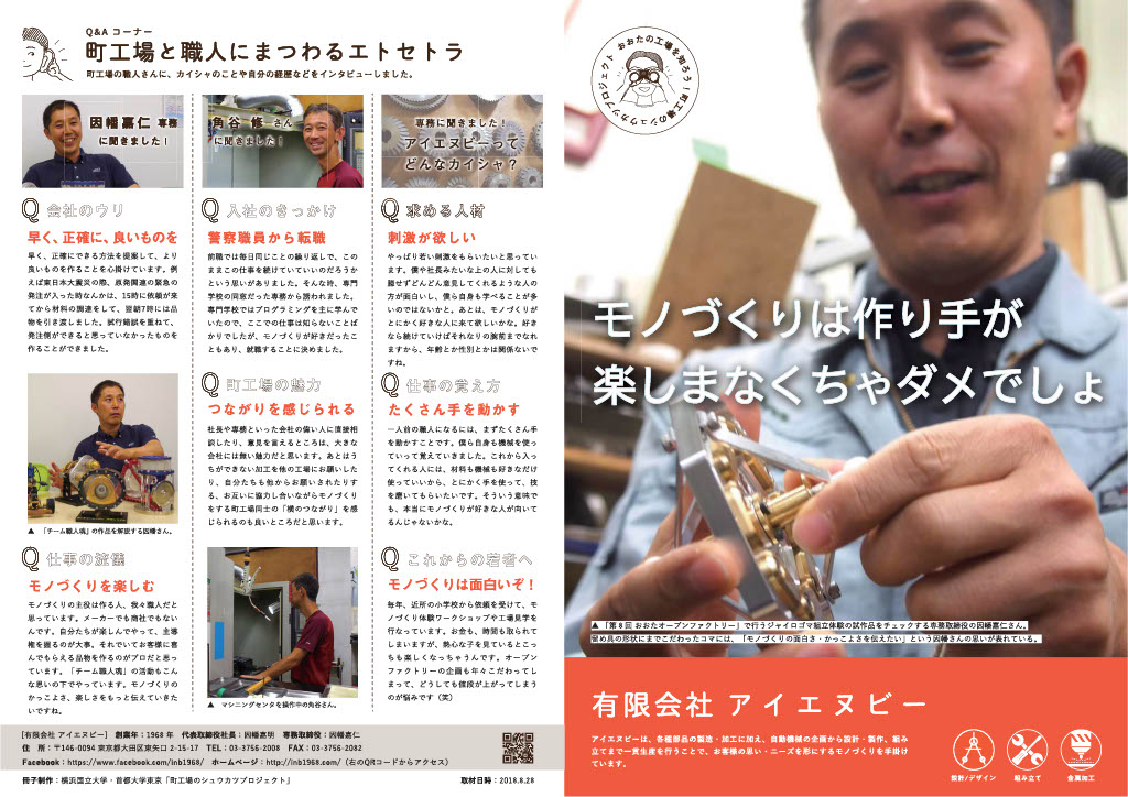 INBをはじめとして大田区の複数の町工場が集まって結成された「チーム職人魂」。「モノづくりって面白い・カッコイイ」をテーマに、モノづくりを通してその魅力を伝える活動をしています。その中で製作された数々の魅力的なおもちゃを一挙にご紹介いたします!