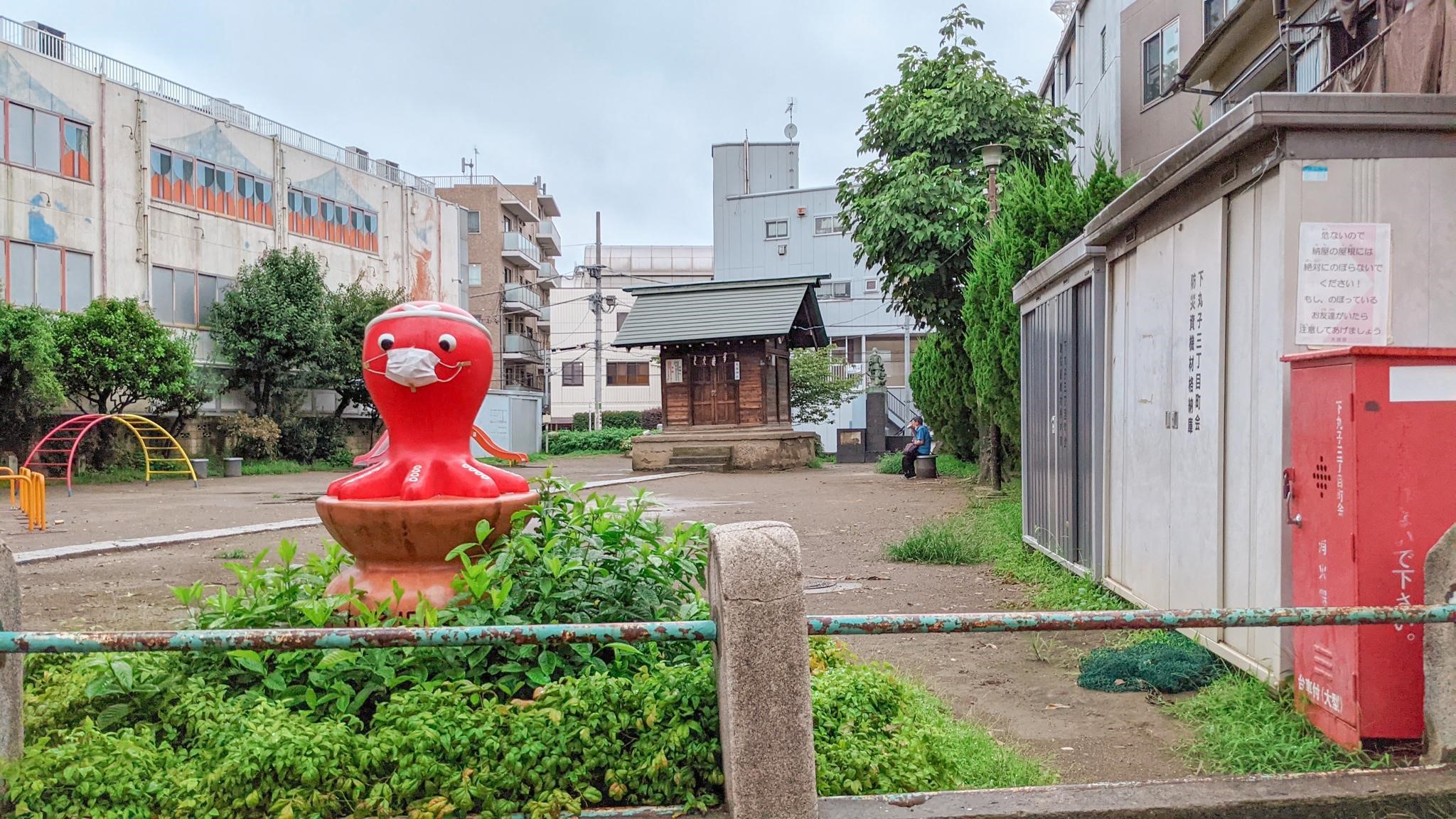 商店街の中にある公園で地元の方はタコ公園って呼んでいて、可愛い真っ赤なタコのオブジェが目印。昼間は子どもたちが遊ぶ元気な声が聞こえてきます。防災ベンチもあってもしもの備えがされているし、区画整理完成の記念碑とかもあります。