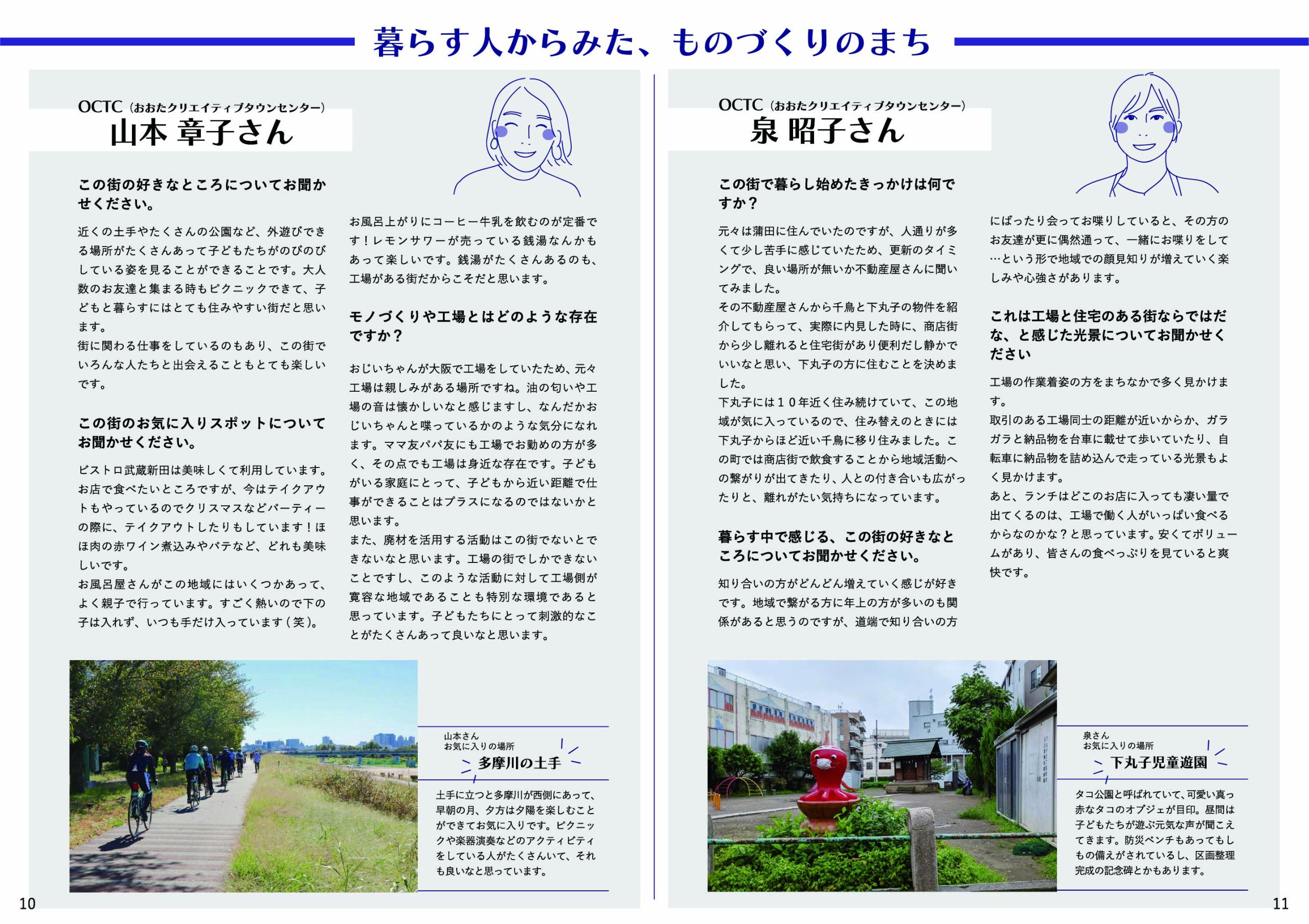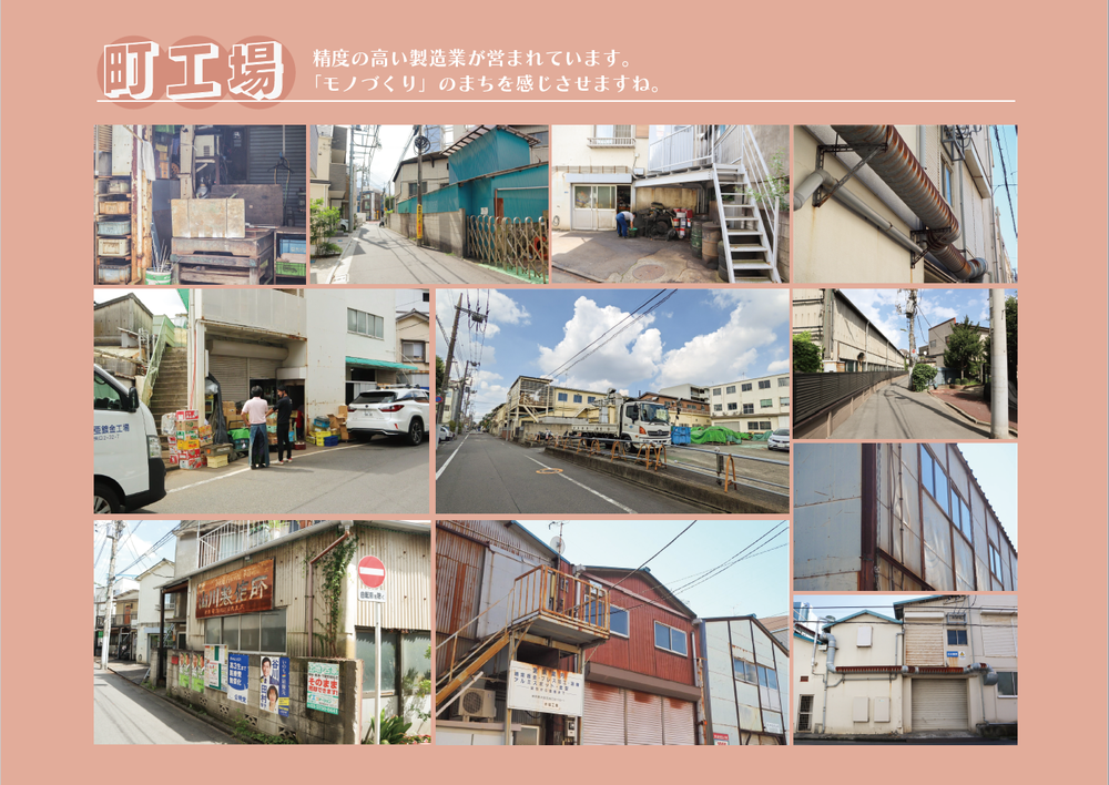 実際に武蔵新田・下丸子周辺にお住まいの方/町工場で働かれている方の生の声、モノづくりのまちの様々な日常風景を、多くの写真とともにご紹介します。