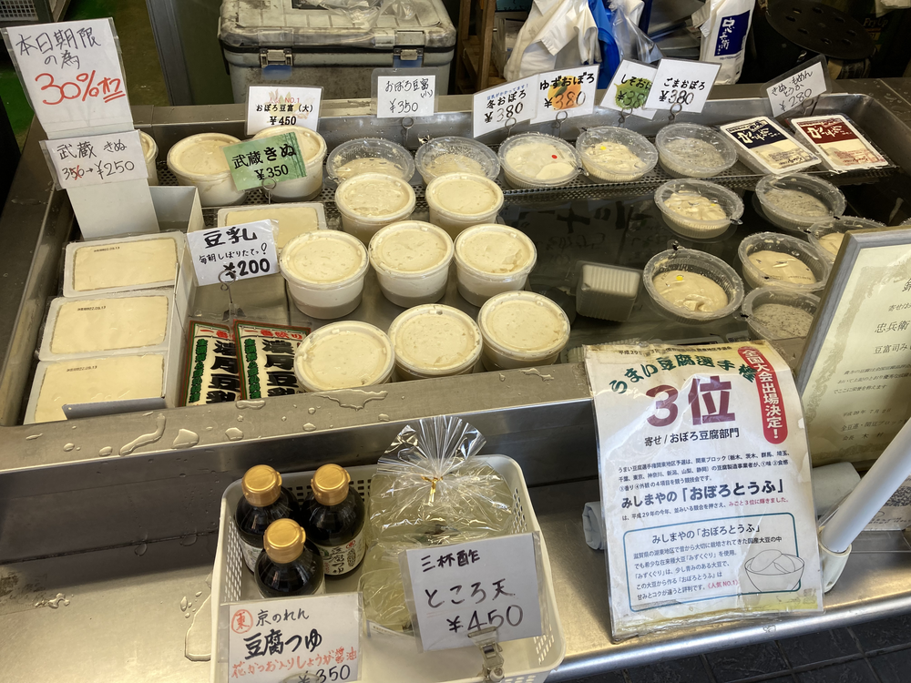 豆の個性を見極めて作ったこだわりの豆腐のほかに、揚げ物、近隣の洋菓子店とコラボしたシフォンケーキなど、多様な商品が並んでいます。なかでも「できたておぼろ」はおすすめの逸品です。